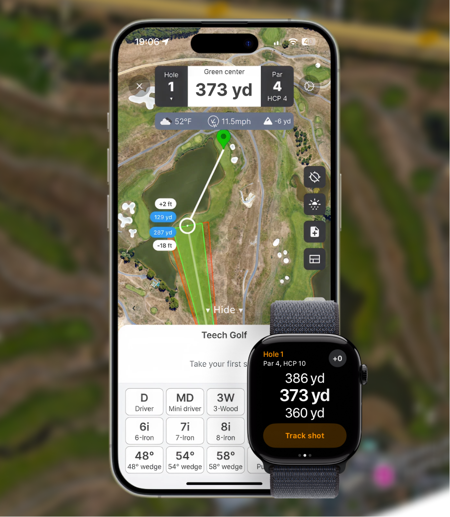 Teech Golf is available on iOS and Android smartphones. We also have an Apple Watch version for easier in-round tracking.